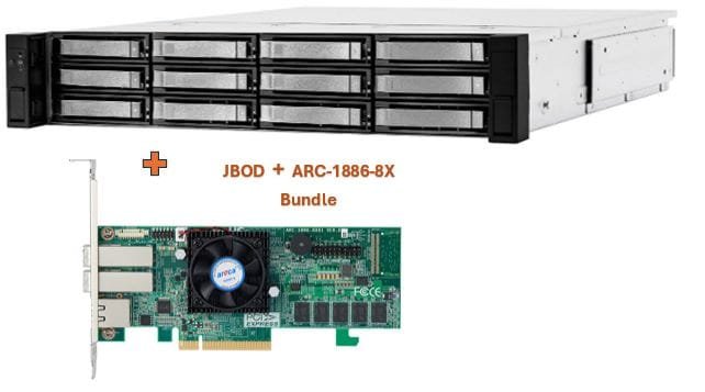 | RAID | · No RAID function, just Bunch of Disks, RAID function coming from host. · Please consider our Areca ARC-1886-8X / ARC-1886-8X8i, or MegaRAID 9580-8i8e bundles. | · No RAID function, just Bunch of Disks, RAID function coming from host. · Please consider our Areca ARC-1886-8X / ARC-1886-8X8i, or MegaRAID 9580-8i8e bundles. |