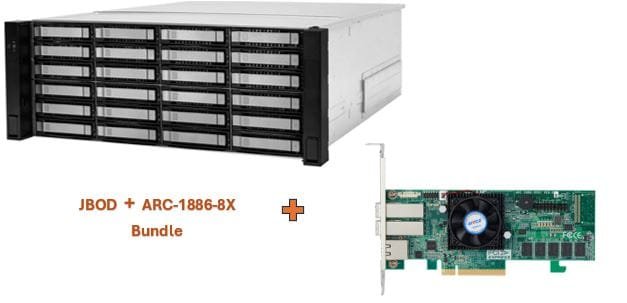 | RAID | · No RAID function, just Bunch of Disks, RAID function coming from host. · Please consider our Areca ARC-1886-8X / ARC-1886-8X8i, or MegaRAID 9580-8i8e bundles. | · No RAID function, just Bunch of Disks, RAID function coming from host. · Please consider our Areca ARC-1886-8X / ARC-1886-8X8i, or MegaRAID 9580-8i8e bundles. |